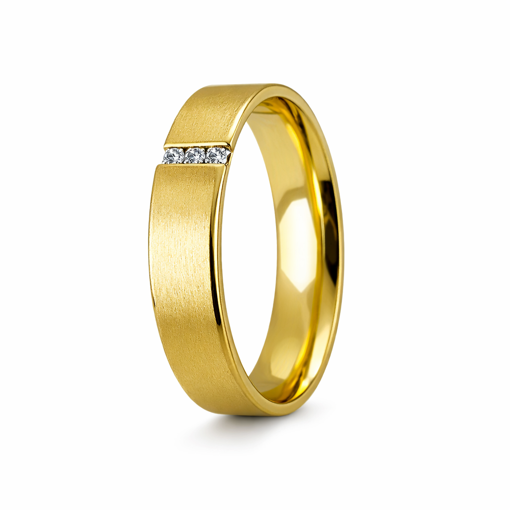 Alianças podem sofrer alteração de peso conforme sua numeração. Aliança em Ouro 18K 5,00 mm com 3 Diamantes de 2 Pontos 0,06 cts, acabamento polido com trabalho diamantado. Aproximadamente 5,00 mm de diâmetro. Fabricadas em Ouro Amarelo 18k, acompanham Certificado de Garantia e Autenticidade do Ouro 18k. Ideal para Noivado, Casamento ou Compromisso. Eternize esse momento com essa linda joia em Ouro 18k.