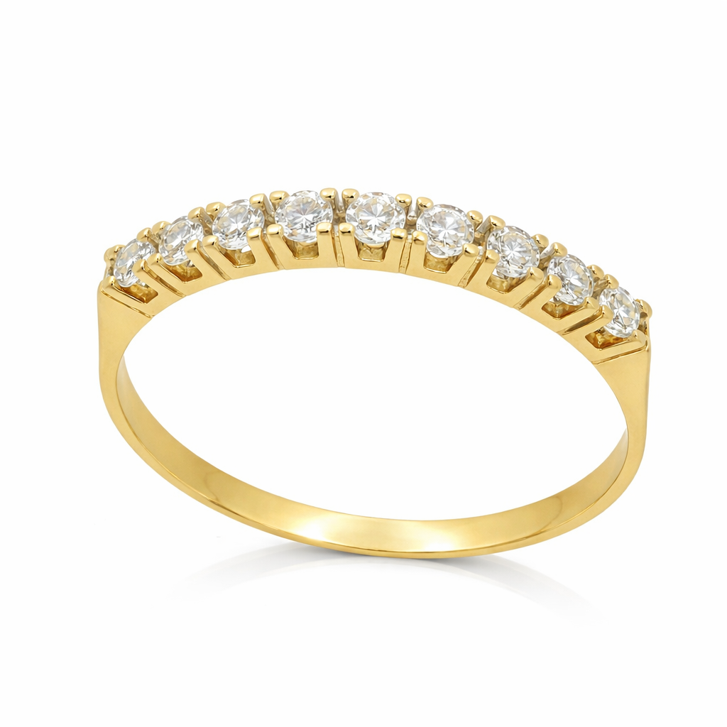 O Anel em Ouro 18K com 9 Zircônias é a joia perfeita para eternizar momentos únicos. Fabricado em ouro 18K legítimo com acabamento polido, ele é adornado com 9 zircônias delicadamente lapidadas, que proporcionam brilho e elegância em cada detalhe.