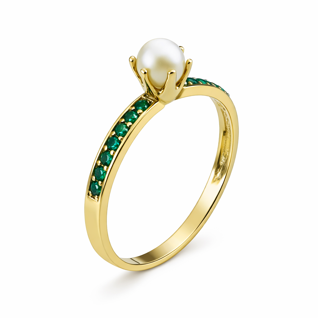 Um design sofisticado que combina a delicadeza da pérola com o brilho intenso das esmeraldas. Este anel em Ouro 18K é a escolha perfeita para eternizar momentos especiais com elegância e exclusividade.