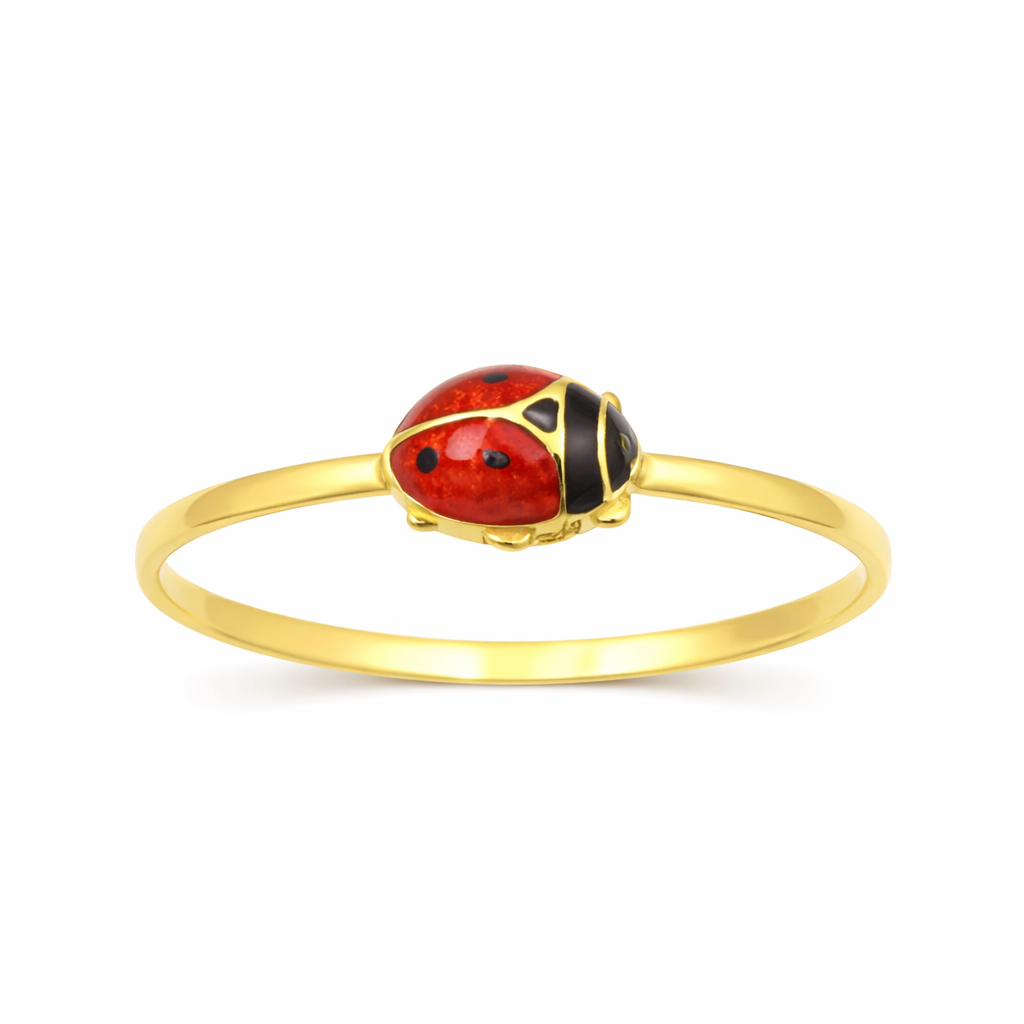 Delicado e encantador, este Anel Infantil em Ouro 18K traz o charme da joaninha com resina esmaltada, simbolizando sorte e alegria. Com aro meia cana sem forro e acabamento polido, é uma joia especial para acompanhar momentos inesquecíveis da infância.