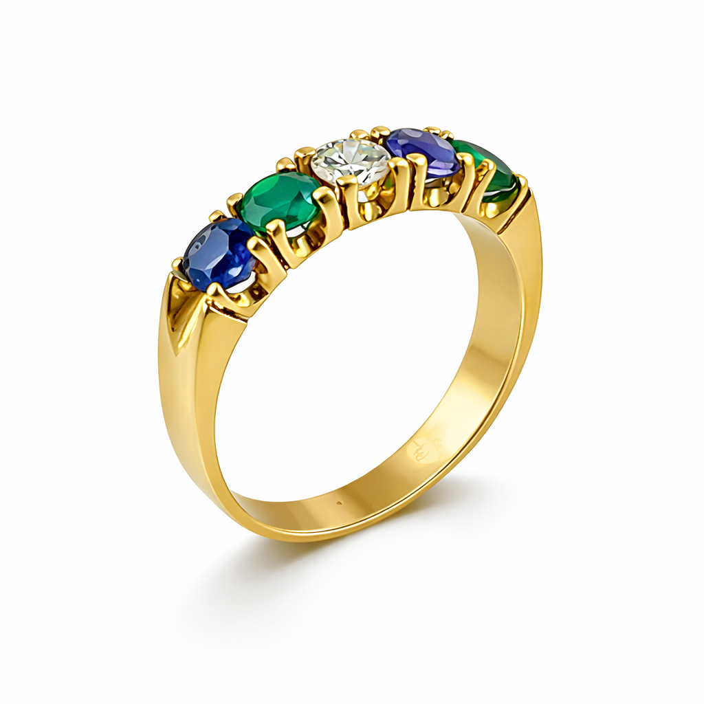 O Anel em Ouro 18K Meia Aliança com diamante, crisoprásio e ametista é perfeito para quem deseja uma joia elegante, vibrante e exclusiva – símbolo de compromisso, estilo e autenticidade.