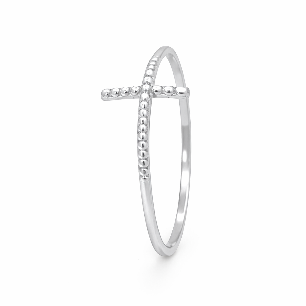 O Anel em Ouro Branco 18K Cruz Bolinha é mais que uma joia: é um símbolo de fé e elegância que valoriza seu estilo em todos os momentos.
