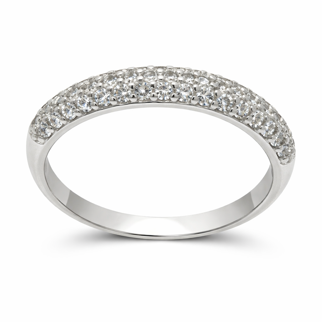 O Anel de Prata 925 com Cravação Pavê é uma joia sofisticada e atemporal, ideal para compromissos ou para eternizar momentos especiais. Seu design moderno e delicado, com zircônias cravejadas em pavê, garante brilho intenso e acabamento impecável. Produzido pela Justino Ribas, acompanha Certificado de Garantia e Autenticidade da Prata 925, assegurando qualidade e procedência.