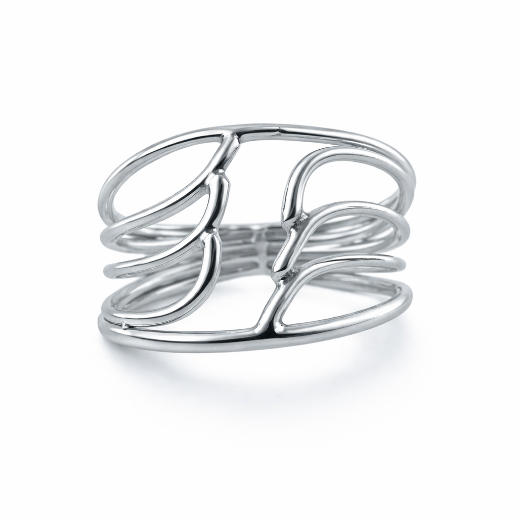 Anel elegante em Prata 925, com design moderno de fio vazado e reto, acabamento polido e estilo minimalista. Uma peça sofisticada, perfeita para compromissos ou para complementar o visual com elegância.