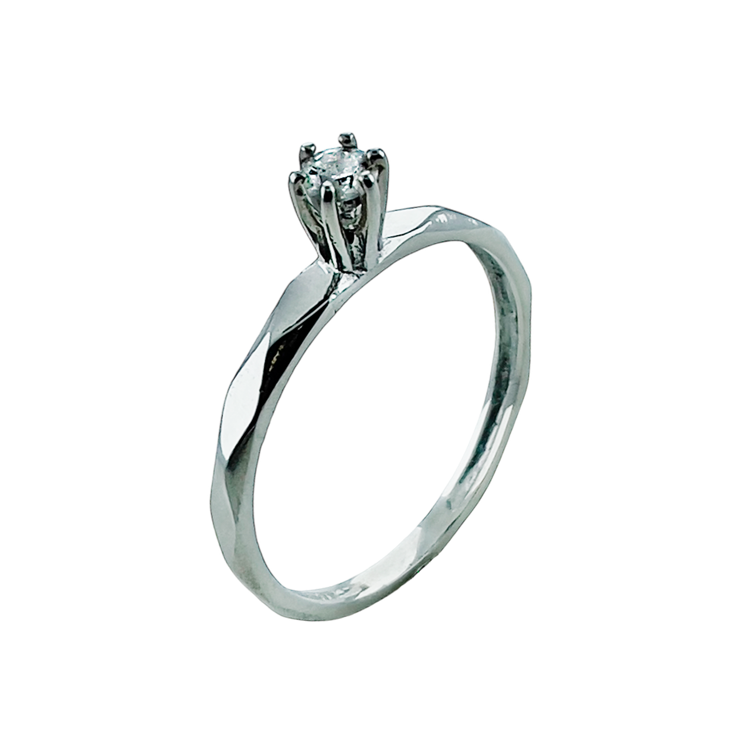Anel em Ouro Branco 18K com Diamante 0,18 ct Solitário Aro Sextavado