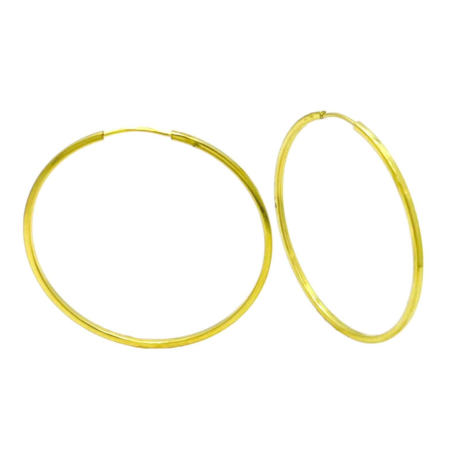 Par de brincos em Ouro Amarelo 18K, com design redondo clássico, versátil e sofisticado. Uma joia atemporal que combina com qualquer estilo, ideal para uso diário ou ocasiões especiais.