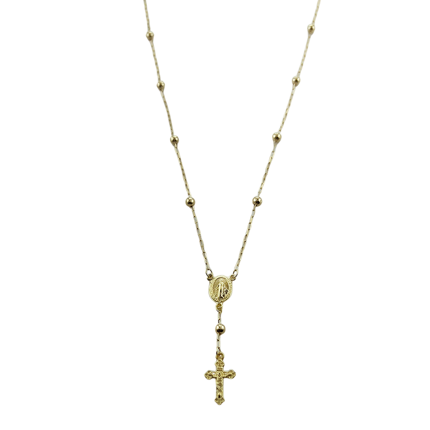 Uma joia de fé e devoção que une espiritualidade e elegância. A Gargantilha em Ouro 18K Meio Terço é confeccionada em Ouro Amarelo 18K e apresenta delicadas esferas polidas, medalha e cruz, compondo um design clássico e atemporal.