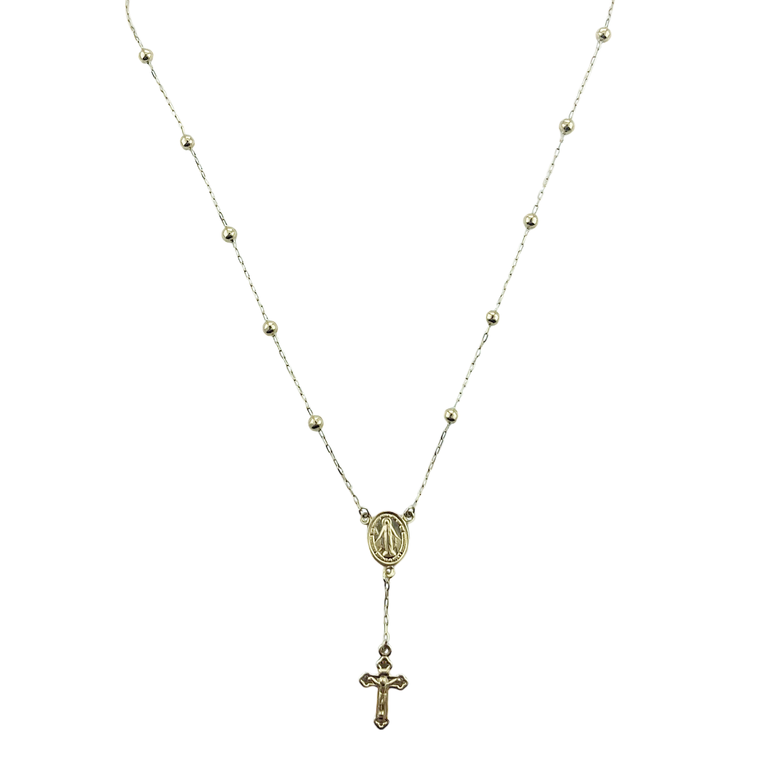 Expresse sua fé com elegância através desta Gargantilha em Ouro Amarelo 18K no estilo terço. Com delicadas esferas de 3 mm, medalha central e cruz detalhada, é uma joia que une espiritualidade, sofisticação e significado, perfeita para eternizar momentos especiais.