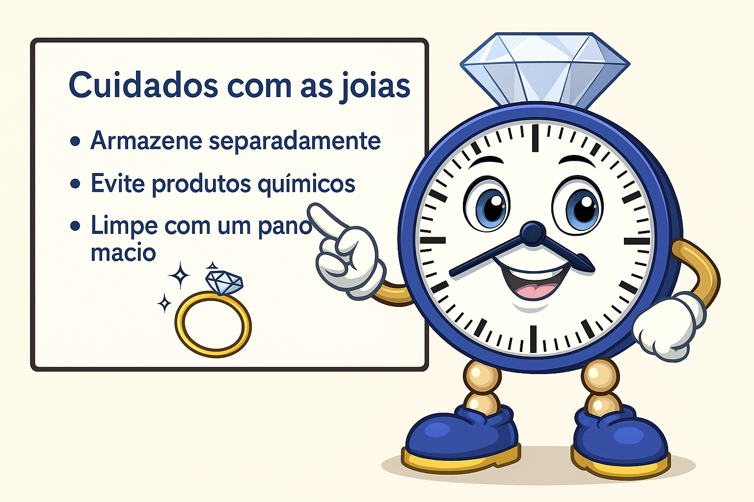 Guarde suas joias em locais limpos e secos, longe da umidade e da luz direta.