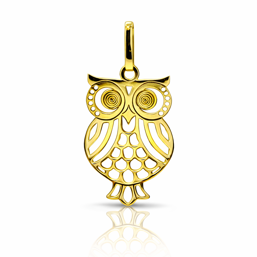 O Pingente em Ouro 18K Coruja Vazado é uma joia sofisticada e cheia de simbolismo, representando sabedoria, intuição e proteção. Seu design vazado confere leveza e elegância, tornando-o uma peça perfeita para eternizar momentos especiais e compor um estilo único.