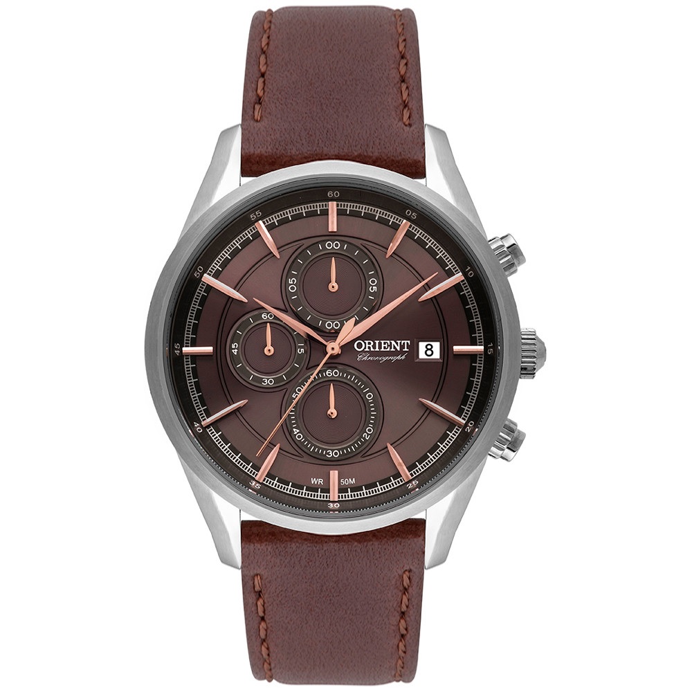 O Orient MBSCC053 N1NX é a escolha ideal para homens que valorizam estilo moderno aliado à praticidade do dia a dia. Seu design combina caixa em aço inoxidável prateado com pulseira de couro marrom, trazendo sofisticação clássica em contraste com o mostrador marrom e fundo preto, que reforçam a modernidade do modelo.