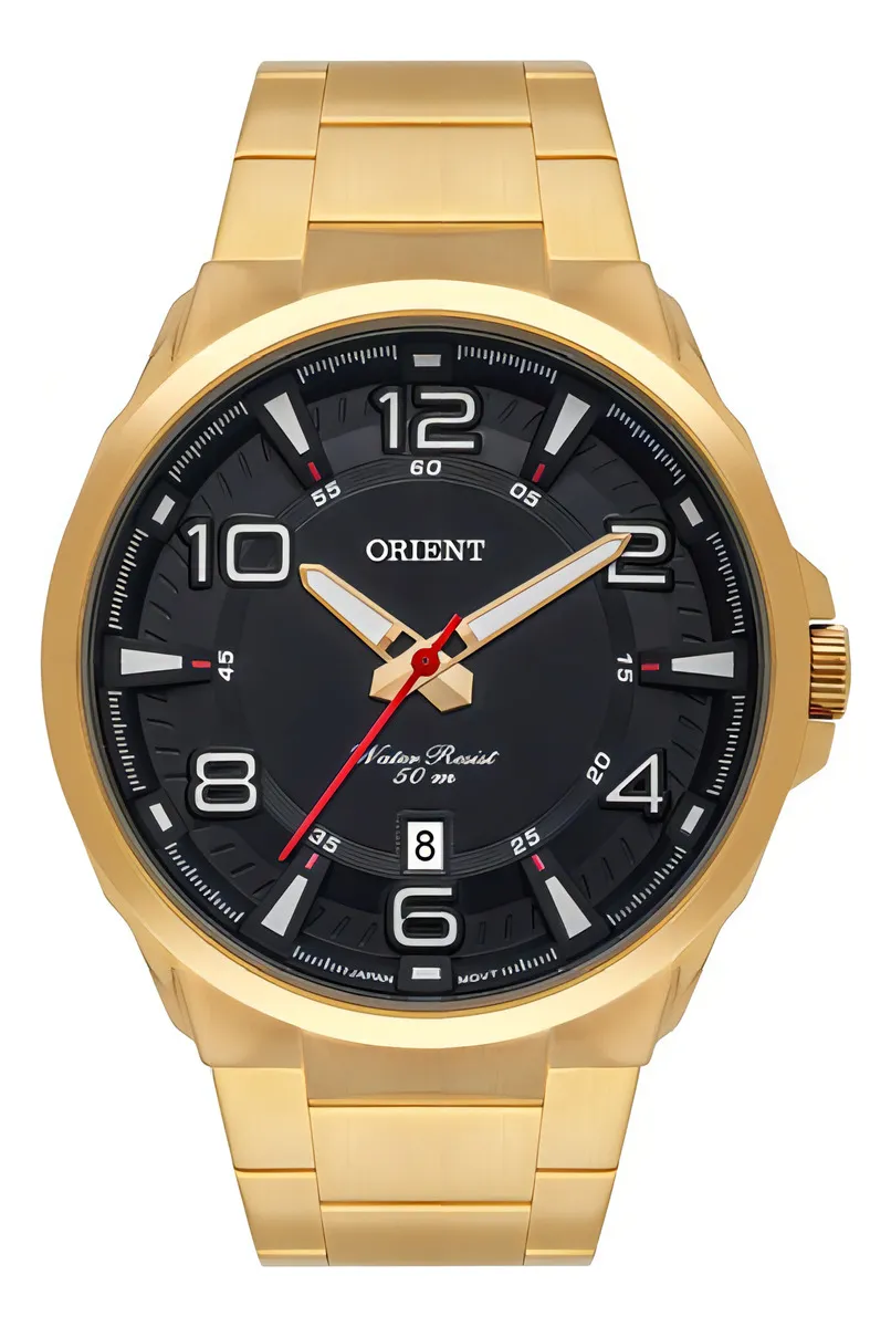O Orient MGSS1177 é um relógio masculino que traduz sofisticação e imponência em cada detalhe. Com pulseira, caixa e bisel na cor dourada, o modelo apresenta um contraste marcante com o mostrador preto, criando um visual moderno e refinado, perfeito para homens que desejam transmitir presença e estilo.